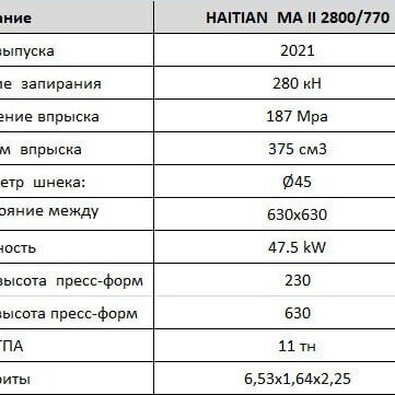 Термопластавтомат HAITIAN MA II 280 тонн, 2021 год.